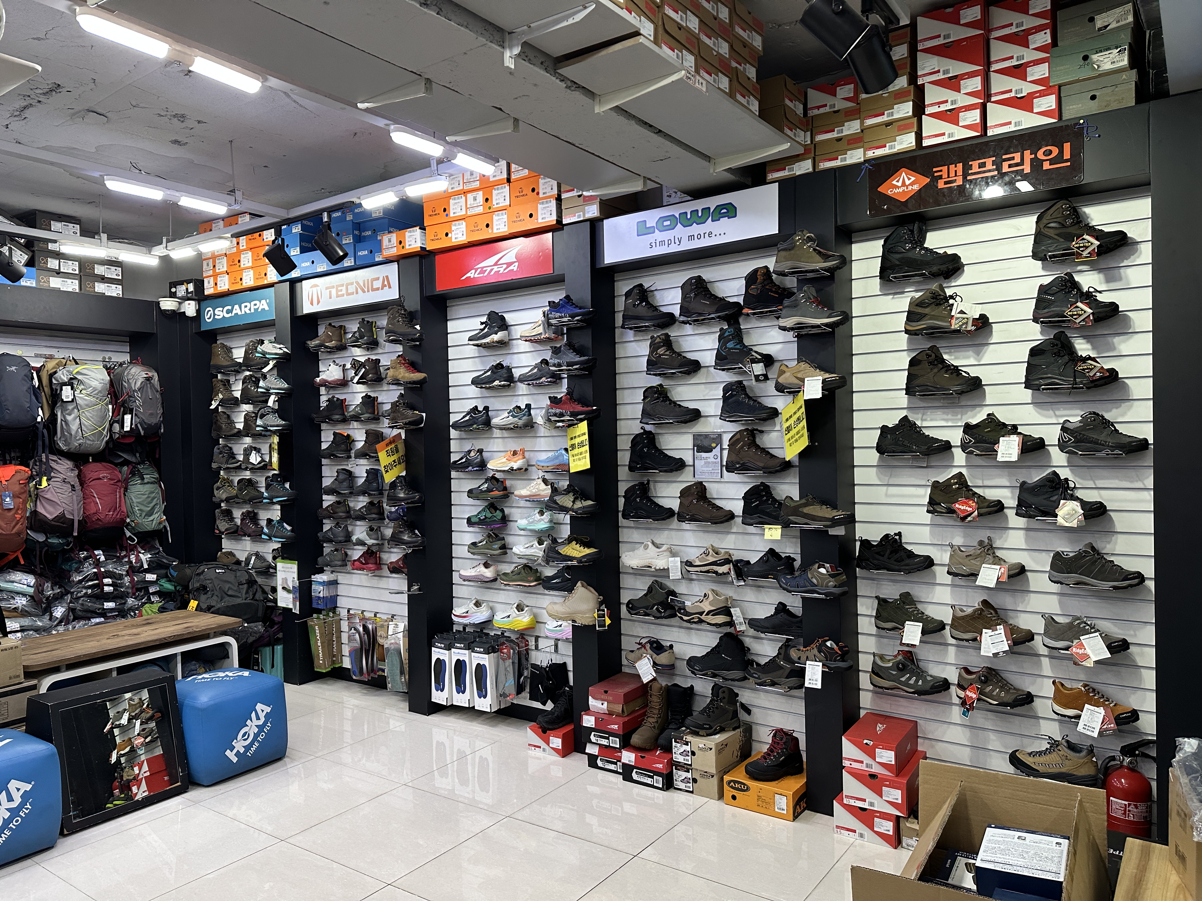 베낭도 다양하게 한쪽 벽면을 가득 메우고 있고, 신발 역시 그렇습니다. ㅎㅎㅎ 이것저것 보느라 혼이 다 빠져나갈 지경이였죠 ㅋㅋ