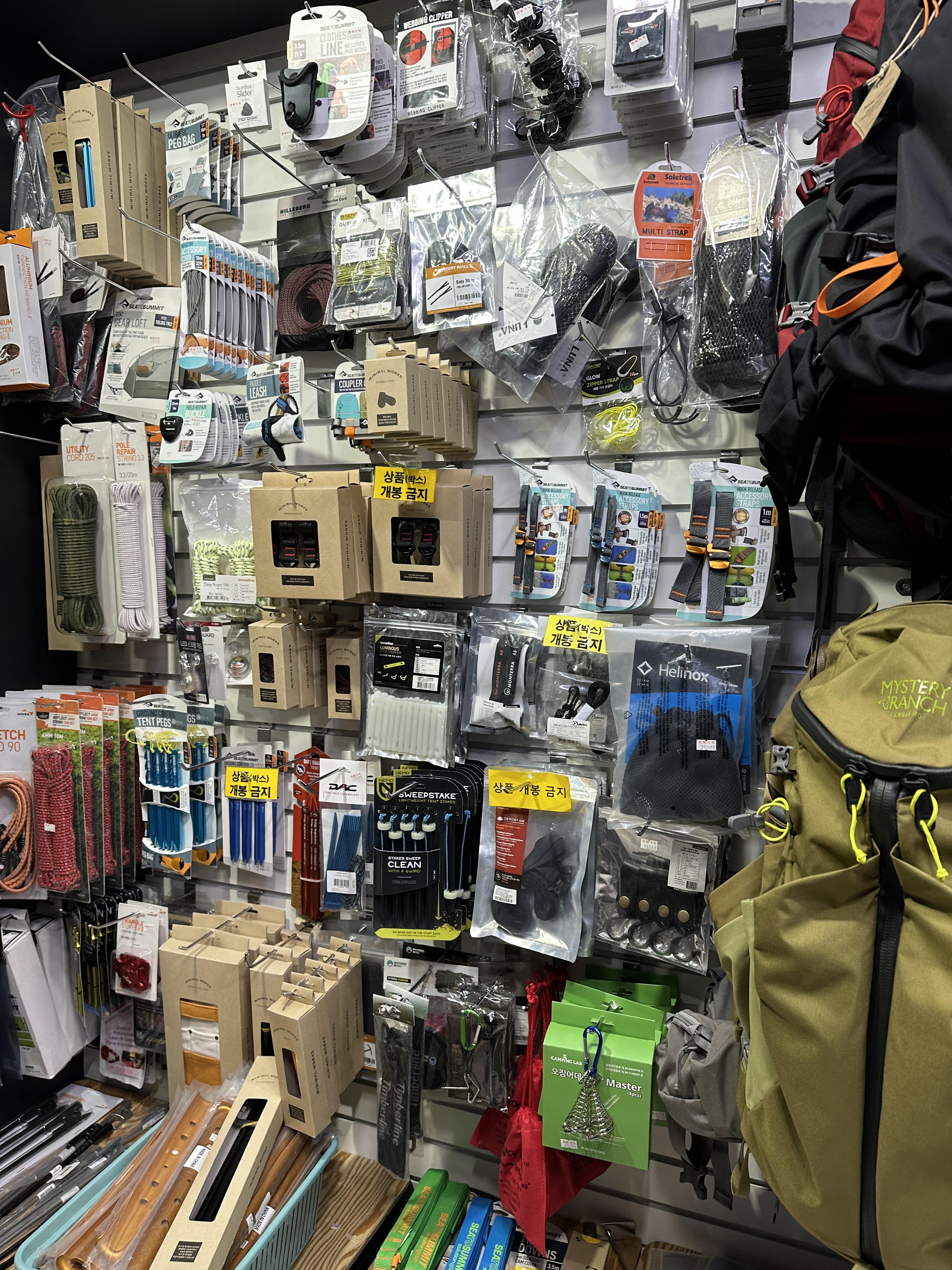 종로5가역 캠핑/백패킹용품 성지 에이스아웃도어의 가장 좋은 점 중 하나는 다양성입니다. 고가의 물품들 외에도 여러 물건들이 있어요.